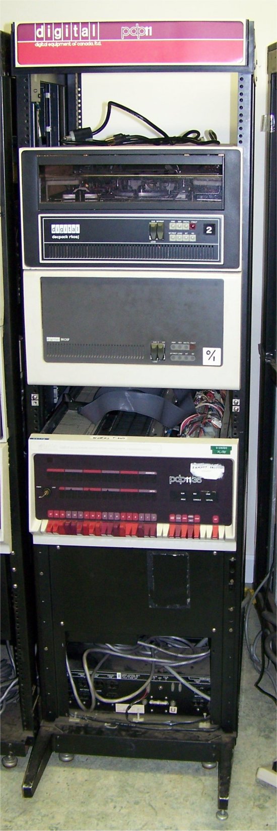 I obtained this PDP-11/35 system early in 2007. It has a full CPU option set, 128k words of semiconductor memory, an RL11 controller,