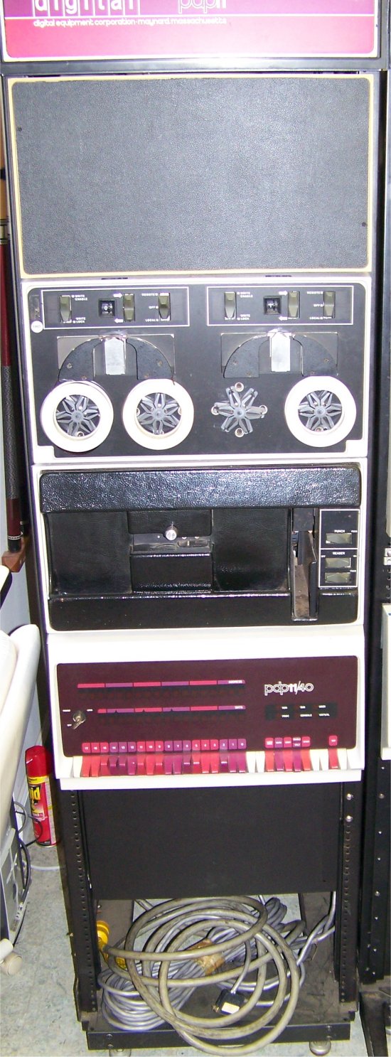 and is in the rack with a PC05 paper tape reader/punch and a TU56/TC11 DecTape system.